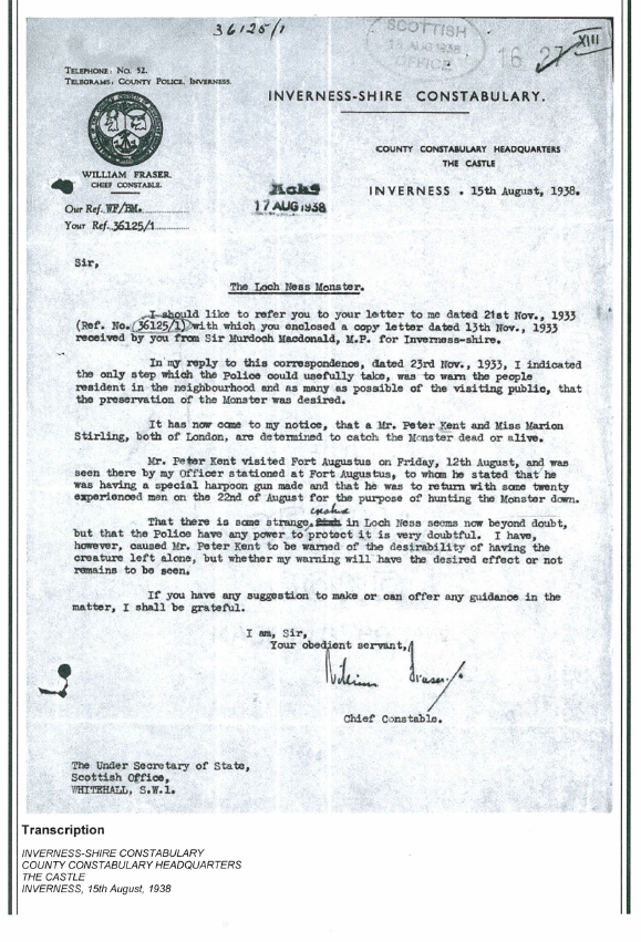 The strange letter, dispatched to the Under State for Scotland at The Scottish office in Whitehall, was sent by Chief Constable of The Inverness-shire constabulary – Mr. William Fraser.